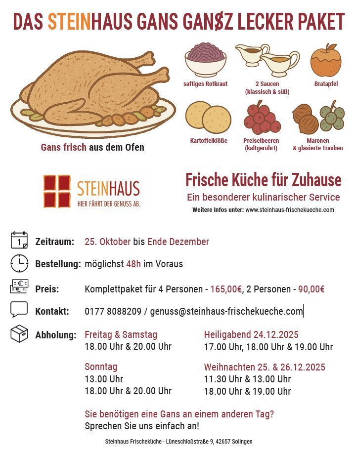 Wir verweisen auf das Angebot von Steinhaus Genuss:
